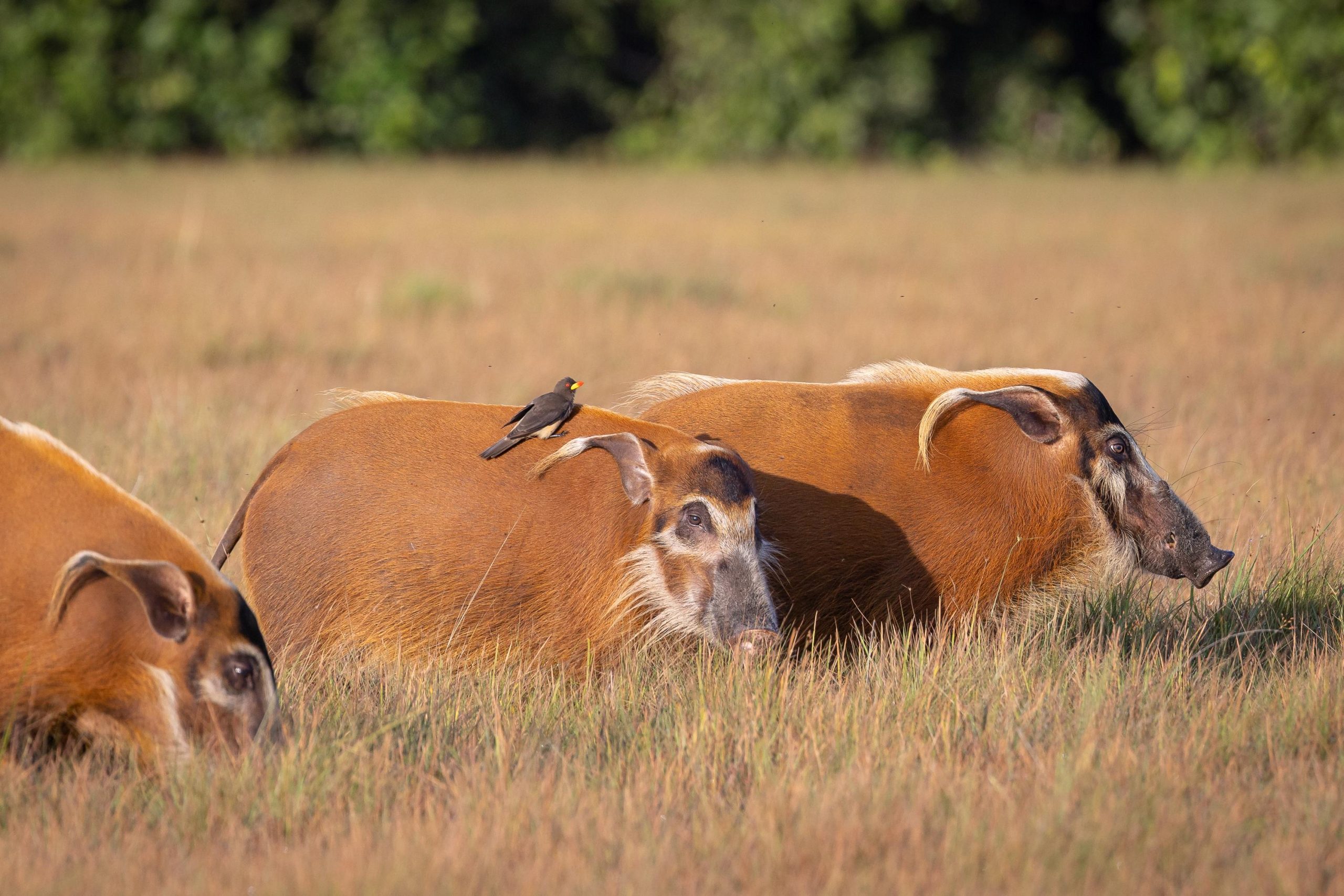 Éléphants, buffles, potamochères et singes… la vie des oiseaux y est abondante.